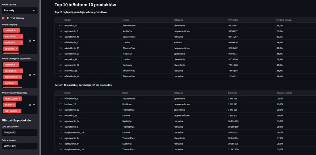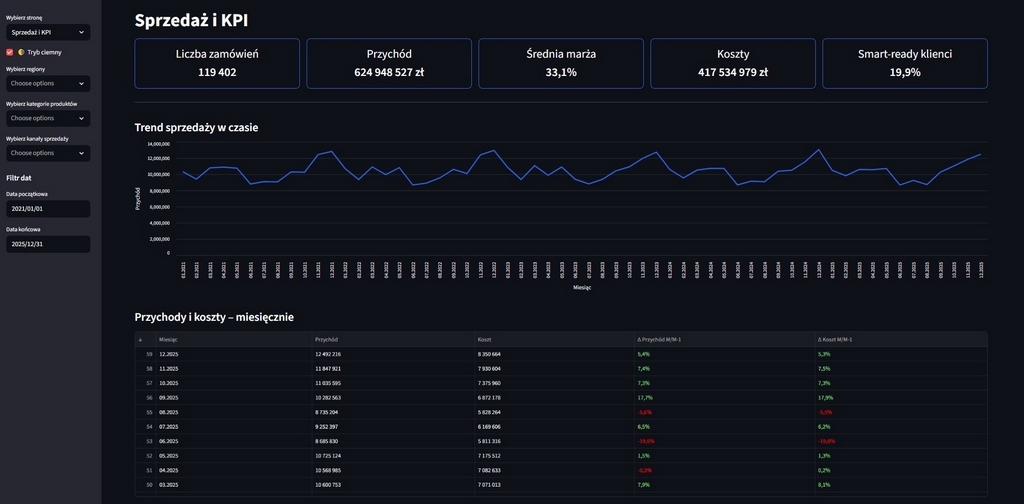 2-3 dashboardy z kluczowymi wskaźnikami (sprzedaż, magazyn, finanse).